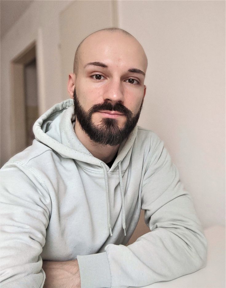 On a bald head, it looks sharp and modern. It’s also a good choice if your cheek growth is lighter than your chin growth.
