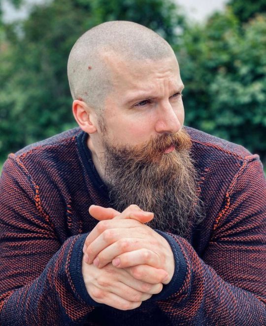 This style works best if you want your beard to be the main feature. With a bald head, it can look confident, bold, and commanding.