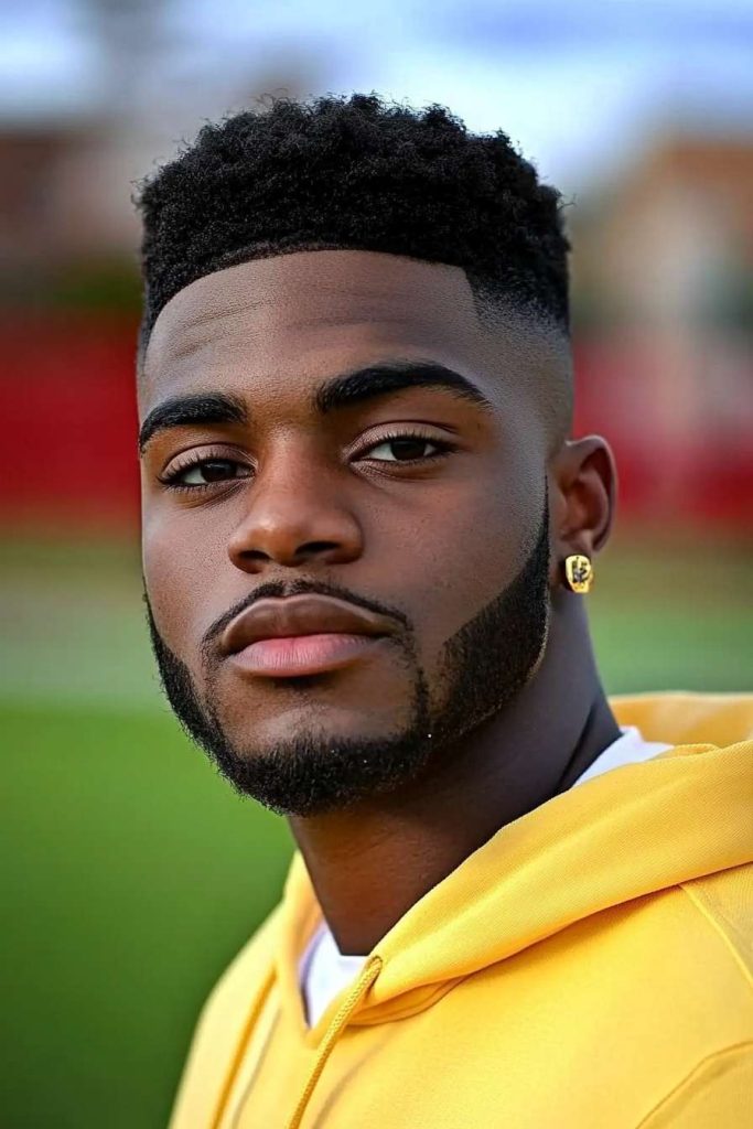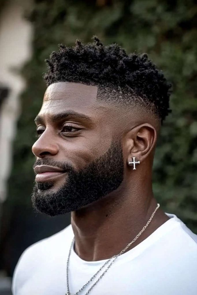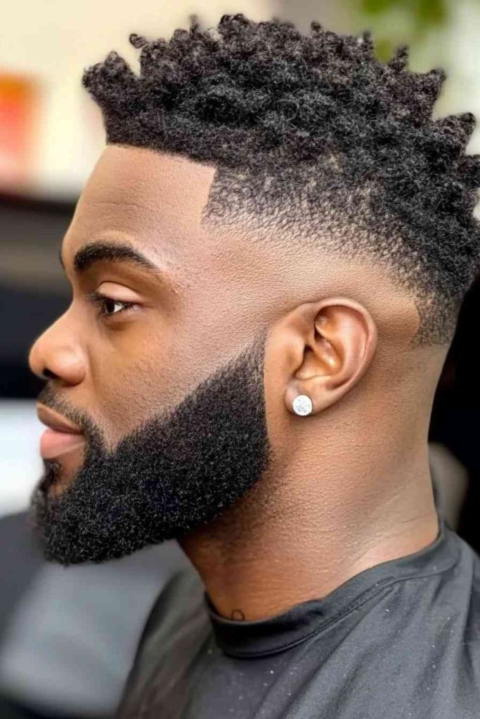 A high fade on the haircut adds contrast and keeps everything looking fresh. Beard styles for Black men like this work well if you want less beard but still want impact.