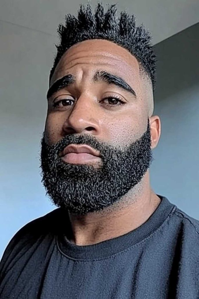 A smooth fade near the top helps the longer beard look even more balanced. Among beard styles for Black men, this one gives a strong statement without needing fancy designs.