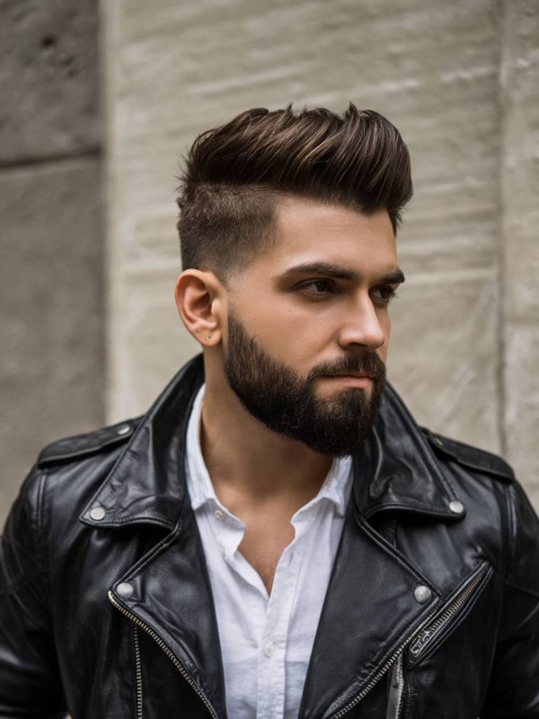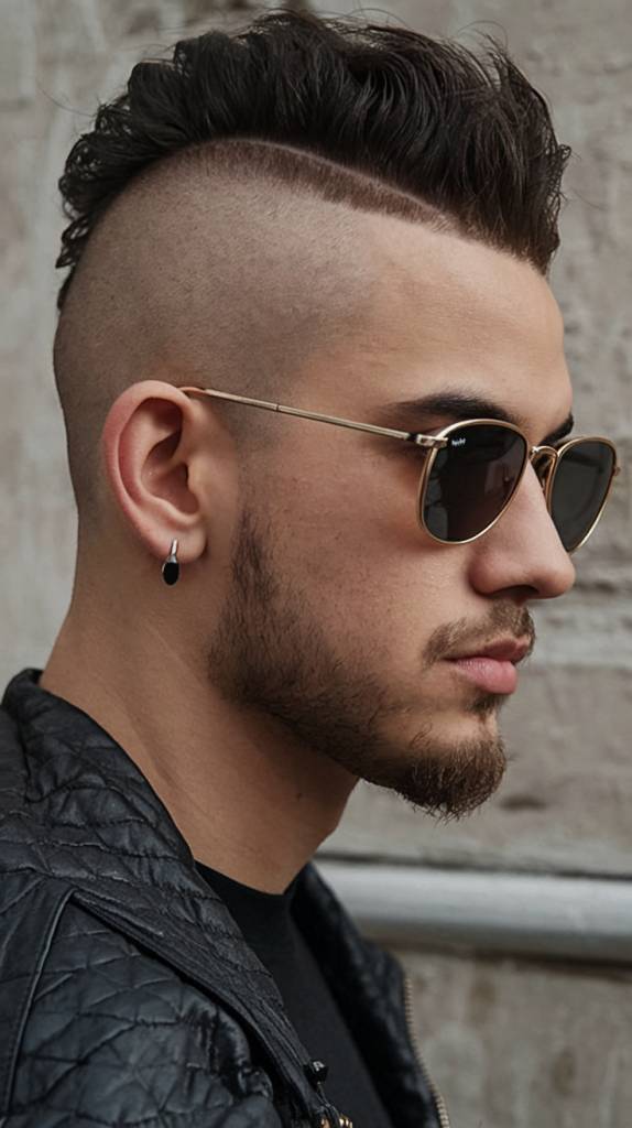 This hairstyle mixes the smooth style of a pompadour with the bold shape of a mohawk. The front has lift and volume, and the sides stay neat.