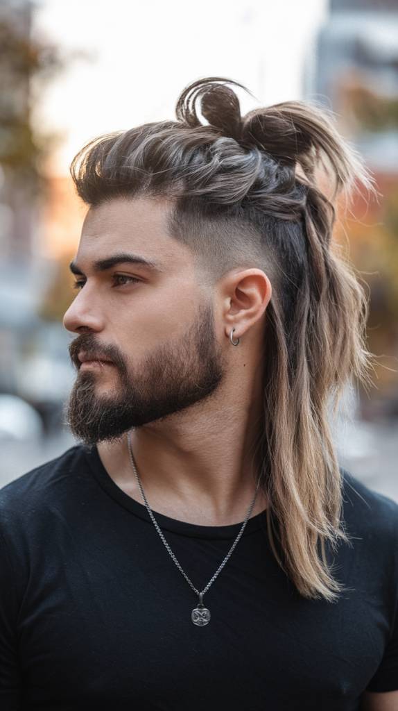 It looks even stronger with a full beard. If you choose this style, keep the braids tidy and the scalp clean so the haircut stays sharp and healthy.