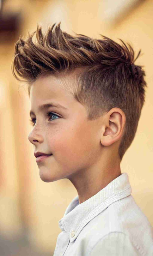 Spiky hair has been cool for decades and this modern version keeps the tradition alive. The sides stay short while the top gets styled upward into fun textured spikes. It is playful and energetic which matches how most young boys actually are.