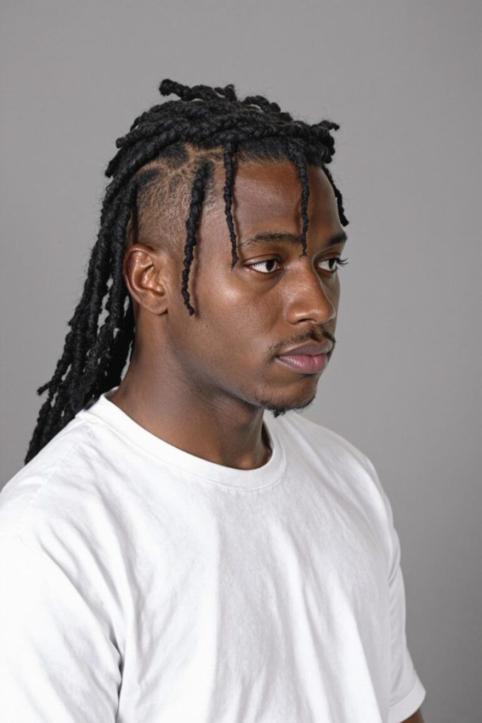 It is a strong choice for those exploring Braided Hairstyles For Men with more texture and length. The shaved sides keep the haircut neat, while the long locs bring movement and style.