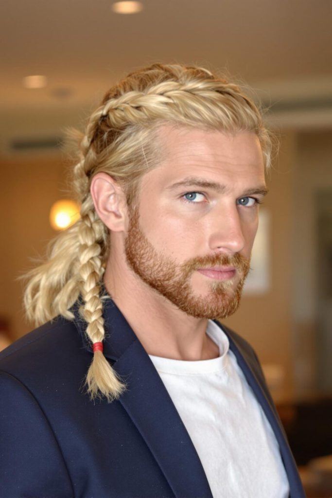 When it comes to Braided Hairstyles For Men, this style is a nice mix of cool and clean. The tied-back finish keeps the hair in place, and the blonde tone makes it more noticeable.