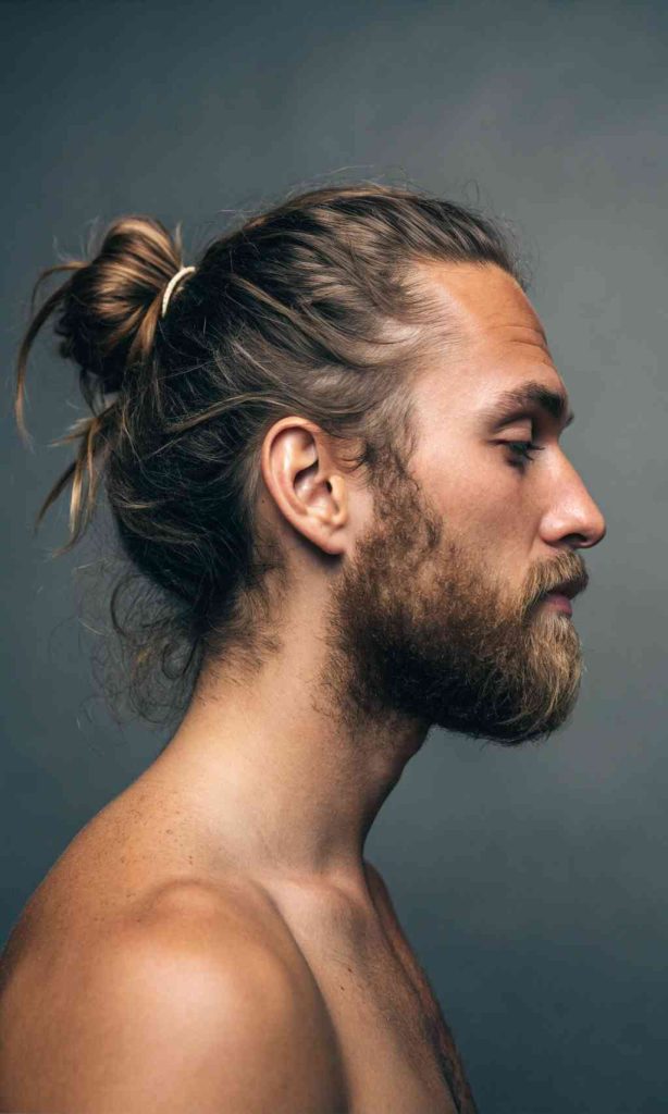 Bun Hairstyles with a beard can look really balanced when both are kept neat. The bun pulls attention upward, while the beard adds weight and shape around the jaw, so the full look feels intentional. Even simple grooming—like cleaning up the beard line and keeping it moisturized—makes a big difference. It’s a classic combo that looks masculine and well cared for.