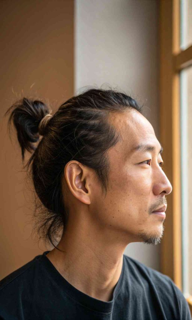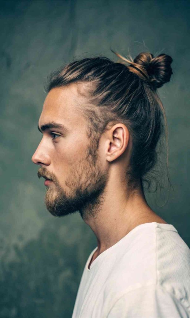 Most men can start trying Bun Hairstyles when the top hair reaches about 6–8 inches, depending on thickness and texture. If your hair is slippery or very straight, you may need a bit more length so it stays tied without falling out.