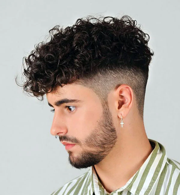 It is perfect for men who love volume but still want a haircut with a clean outline. The fade makes the curls stand out even more and keeps the overall style from looking too heavy.