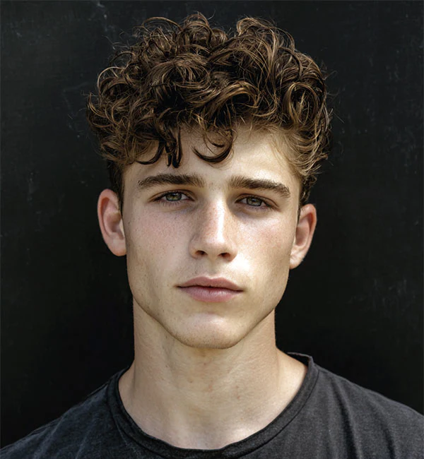 It is one of the easiest Curly Hair Ideas For Men because it does not need a perfect finish. The natural shape of the curls does most of the work, making it a practical everyday hairstyle.