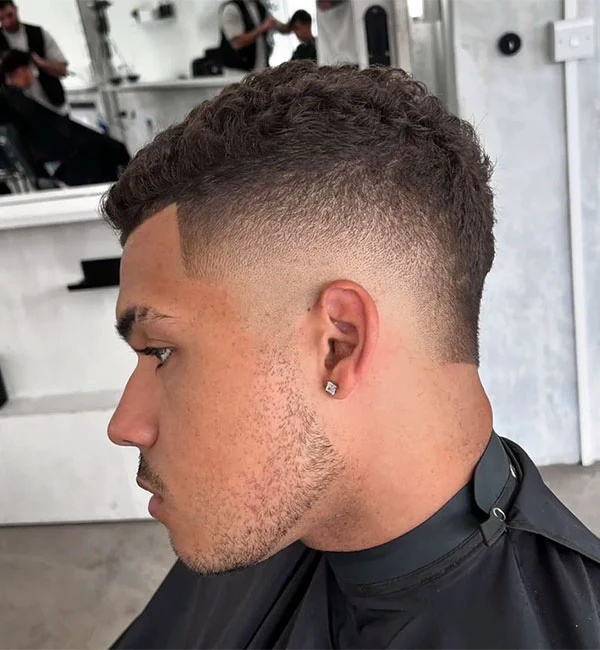 Textured short curls with fade give you a balanced style that looks clean on the sides and full on top. The fade adds sharpness, while the curls keep the haircut lively and attractive.