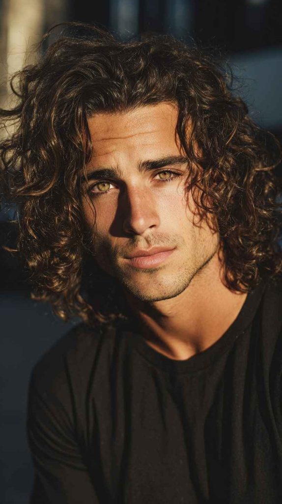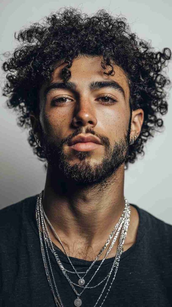 This haircut is great for men who like a laid-back style. The extra length lets the curls stretch and move more freely. A leave-in conditioner or lightweight curl cream can help the hair stay soft, healthy, and easy to manage.