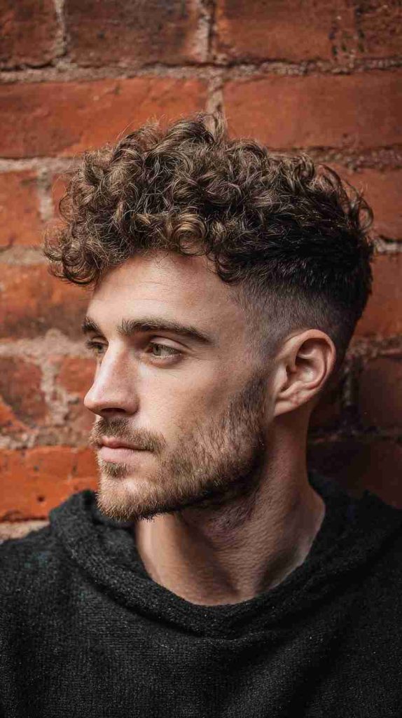 This is one of the most useful Curly Hairstyles For Medium Hair Men if the hair tends to puff out on the sides. The taper keeps things cleaner and more balanced. It also helps the curls on top fall in a more controlled and stylish way.