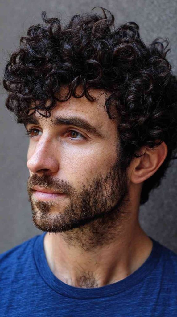 This style works well for men who want a balance between polished and natural. The shorter shape helps the curls stay more defined and less frizzy. It is easy to maintain and looks good with only a small amount of styling product.
