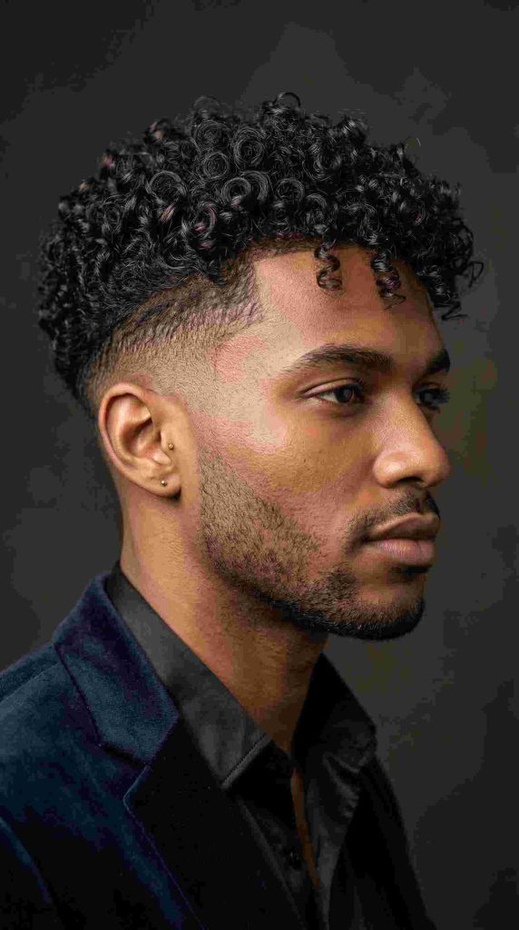 It is one of the best fade haircut ideas for men with curly hair. It shows off the curls while keeping the full style neat, fresh, and easier to manage every day.