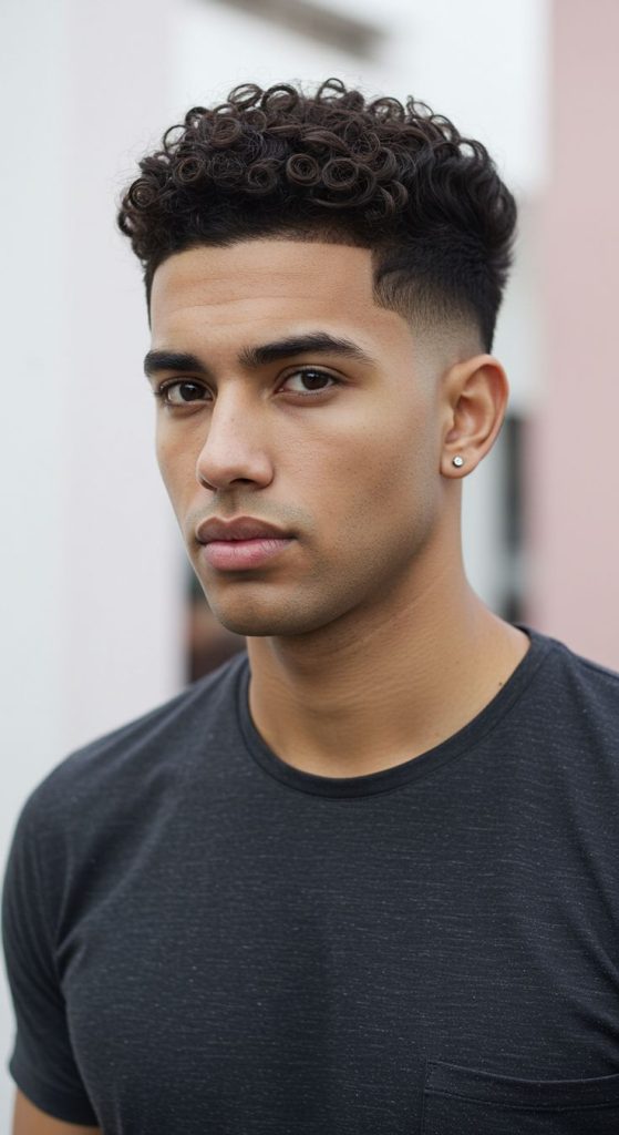 A curly top fade keeps the curls on top and cleans up the sides with a fade. This helps the natural texture stand out without making the haircut look too heavy. It creates a nice balance.