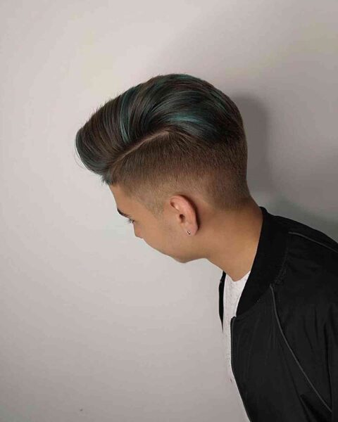 Turn heads with a textured green top that bring fun and rebellion to any haircut. This vibrant twist is one of the bolder hair color idea for men who aren’t scared to go neon or bright. Paired with texture, it make depth and visual contrast.