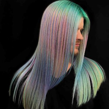 Jump into sea colors with this mix of turquoise and blue. It one cool hair color idea for men who like soft and dream style. The colors go smooth together like water, look very nice.