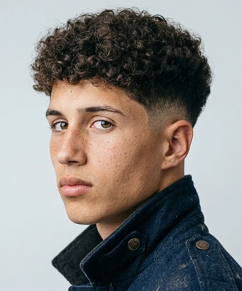 Thick curly hair looks best when the cut gives it shape and control. A faded or shorter side with longer curls on top can make the hair look fresh and full without feeling too heavy.