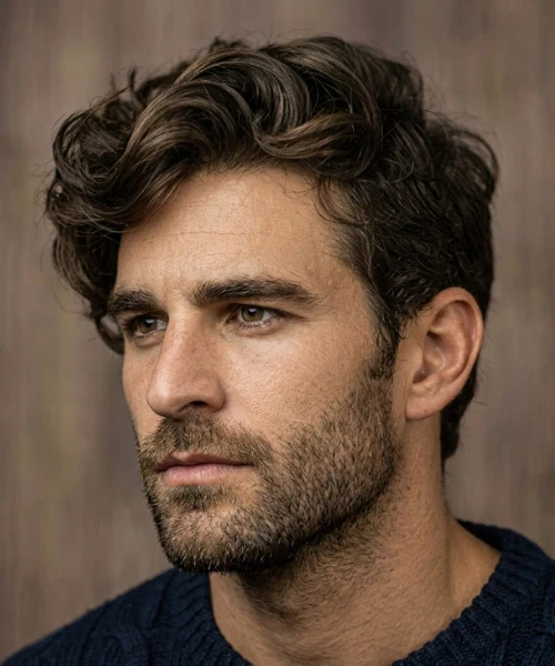 Men with thick wavy hair can wear their natural texture with confidence. This style keeps enough length on top to let the waves show clearly, while the sides are usually cut shorter for better balance.