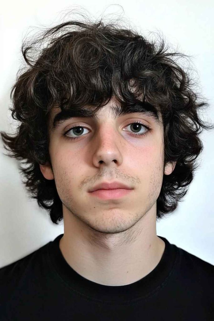 A curly mop cut lets your curls sit naturally around the forehead and sides. It keeps your look soft while still showing your face shape.