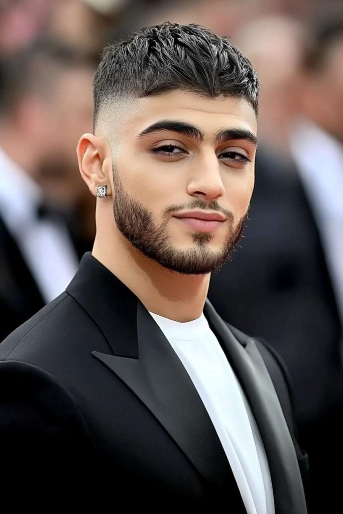 A textured crop gives a clean, modern top with a little grit. The sharp fade makes the whole haircut look polished and “camera ready.”