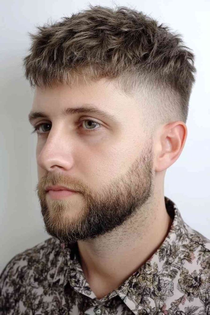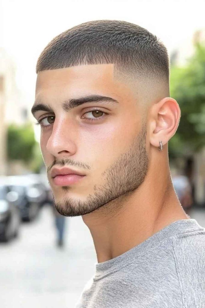 A buzz cut is simple, strong, and very low maintenance. The high skin fade adds contrast, so it doesn’t look flat or boring.