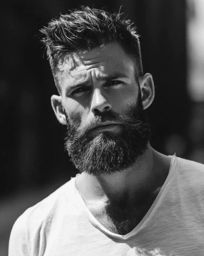 A medium full beard looks strong and complete. It gives your face more frame and makes the jawline look heavier and more solid.