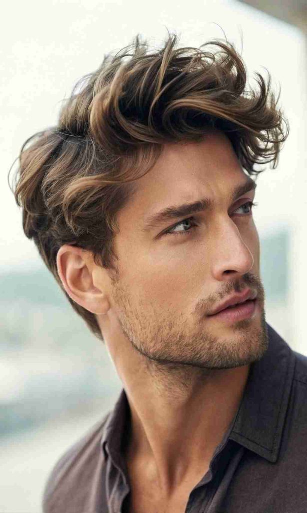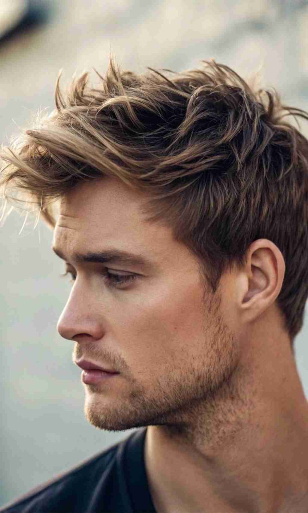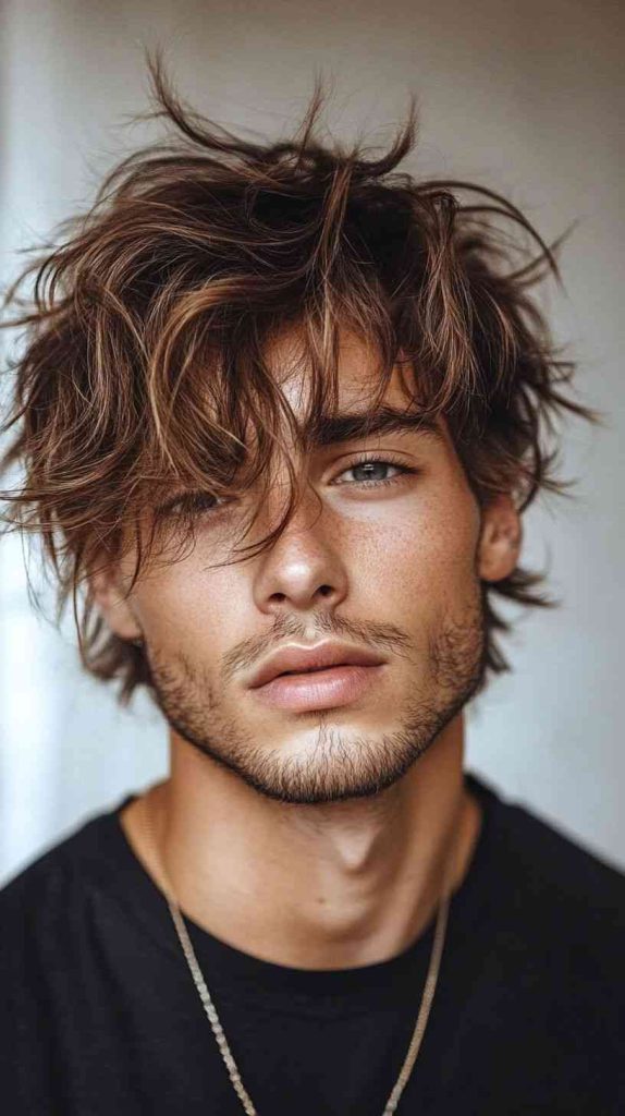 Layered cuts combined with messy hairstyles bring out strong texture and depth. Each layer catches the light differently, giving natural movement that looks effortless. A quick tousle with your hands is often enough to shape it. It’s modern yet simple, making it a favorite for men who enjoy easy style with character.