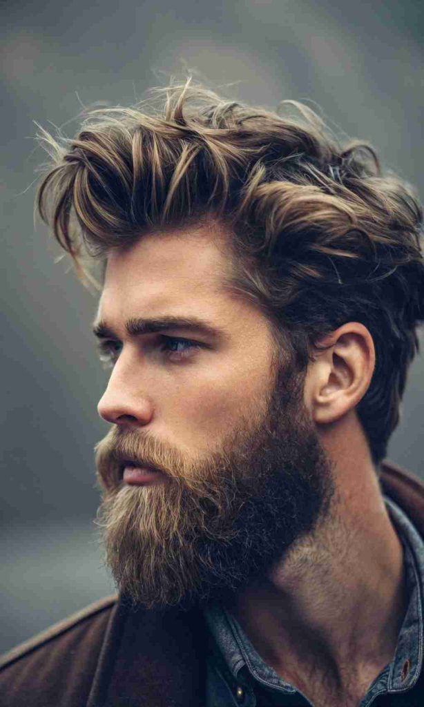 Pairing messy hairstyles with a beard creates a rugged and mature look. The slightly uneven hair contrasts nicely with the defined beard, giving off a relaxed yet masculine impression. It’s great for adding personality without needing sharp edges. Together, the hair and beard tell a story of confidence and freedom.