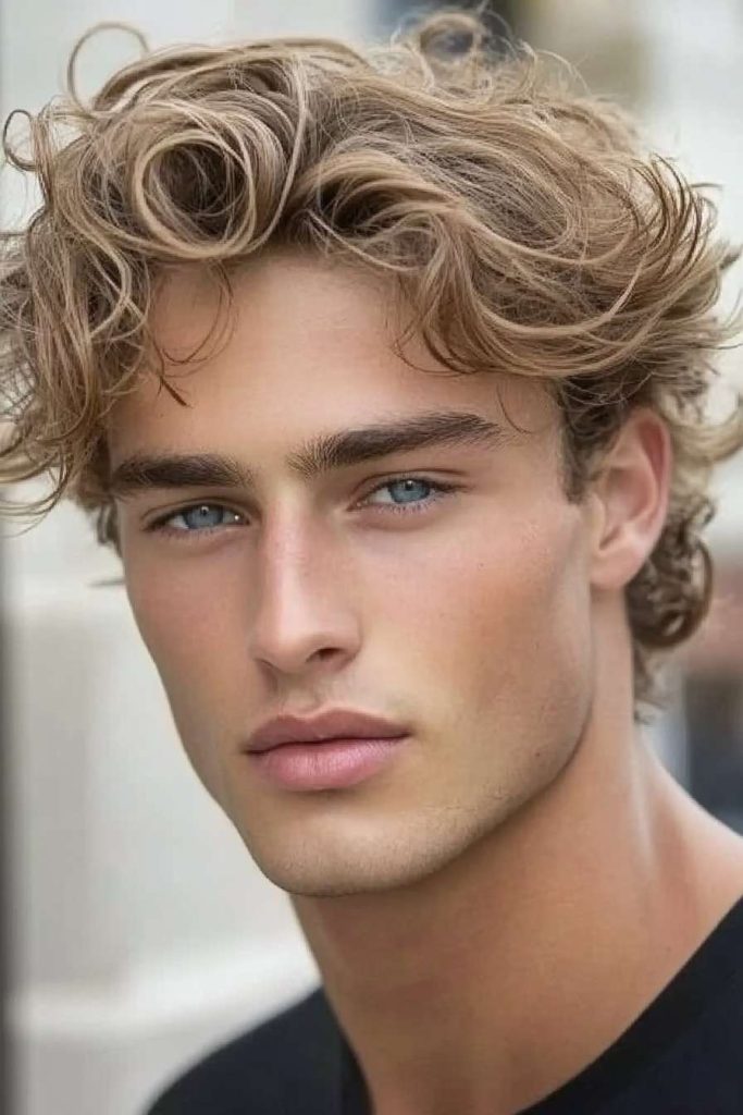 For Middle Part Hair Men with wavy or curly hair, this style looks best with moisture. Use leave-in conditioner first, then style lightly.
