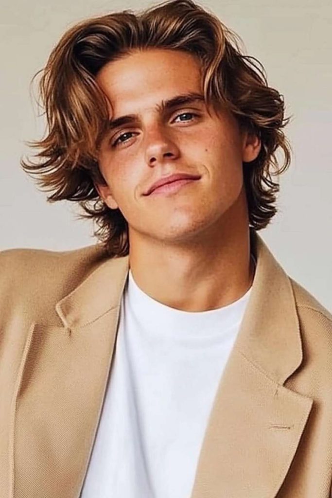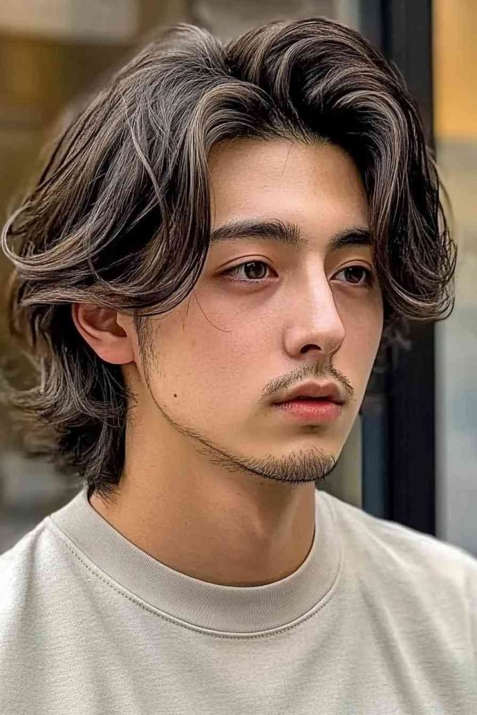 If your hair has highlights or lighter ends, this style shows them off well. Keep the texture airy with sea-salt spray and finger styling.