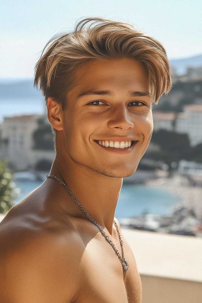 It’s a bold option for Middle Part Hair Men who like contrast. Ask for texture on top so it moves, not just hangs flat.