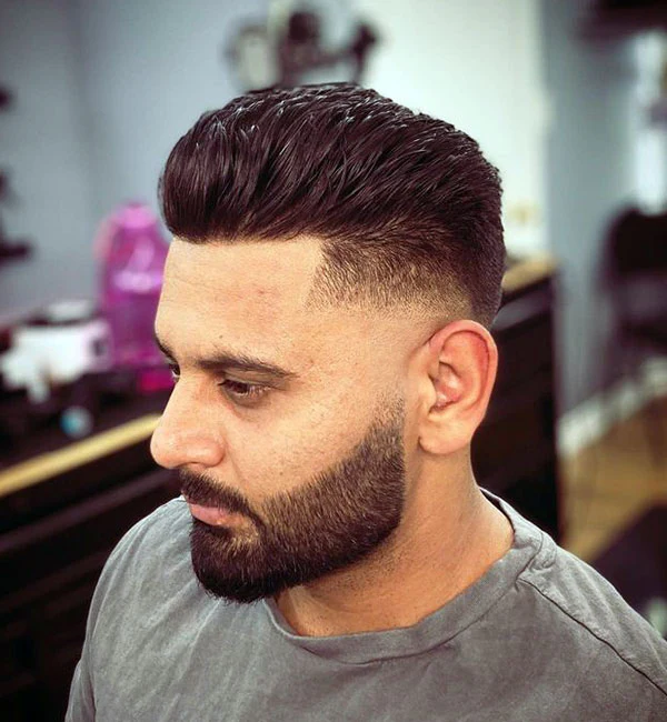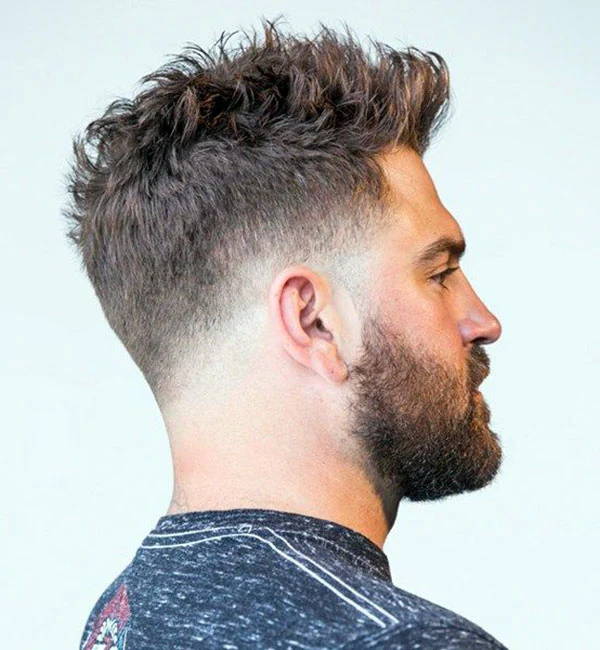 This style is great for men who want a modern haircut with some personality. The fade on the sides makes the face look longer and sharper. It also looks even better with a neat beard for a strong and clean finish.