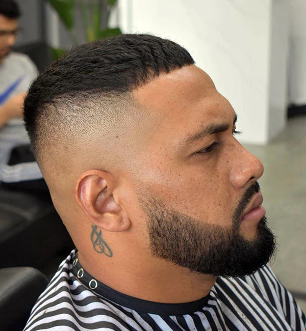 The high and tight fade is a very short and sharp haircut. The sides are faded high, and the top is kept very short. It creates a clean and strong look that is simple and practical.