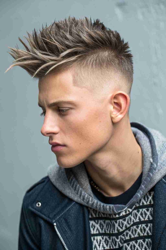 Short spiky hair is a fun short hair mens haircut. The hair on top is styled with gel or wax into spikes. The sides are short or faded.