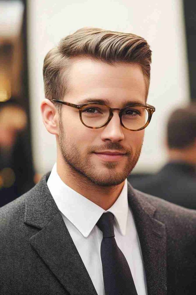 Ivy League haircut give a gentleman look. It match well with glasses, suit, or casual wear. A fade on the side also make it more modern.