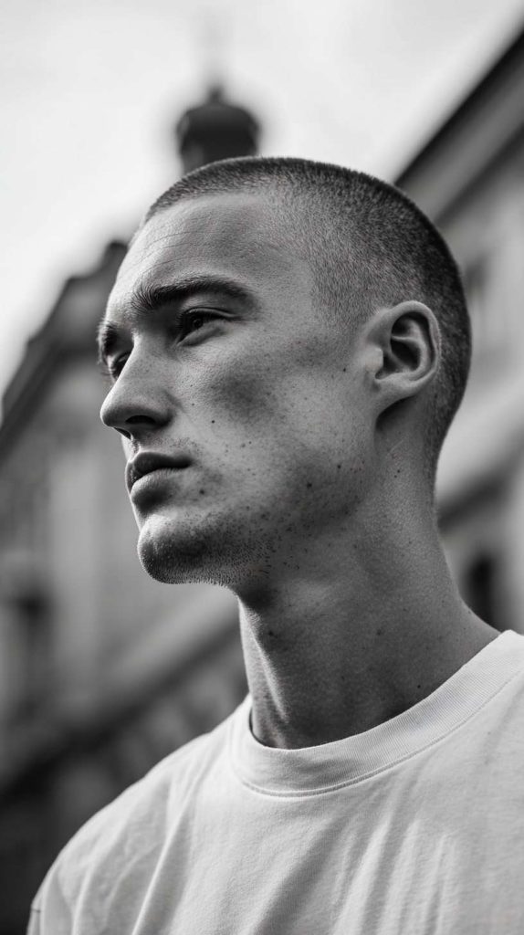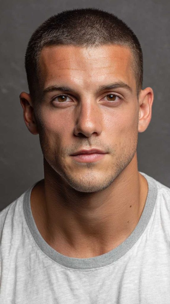 The ultra-clean buzz is a close-cropped haircut that looks very simple and very sharp. It has a neat shape and often includes a soft fade on the sides for extra detail. The result is modern and confident.