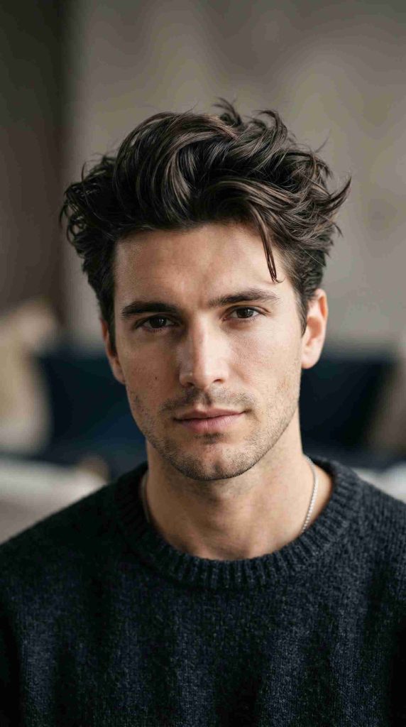 This look is perfect for men who want volume without a stiff finish. It is also a smart choice for thicker hair because texture helps control the shape in a stylish way.
