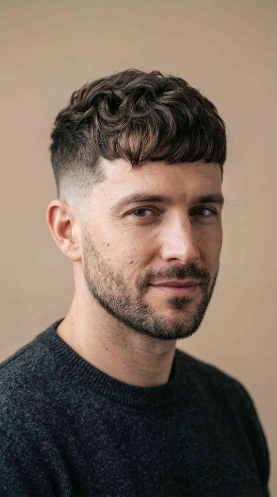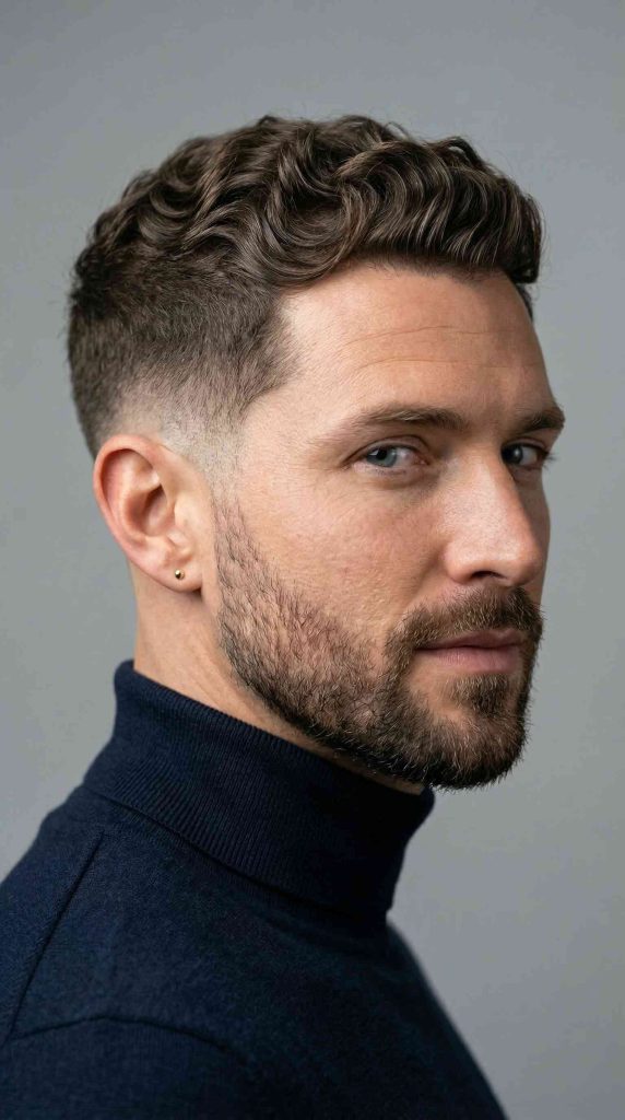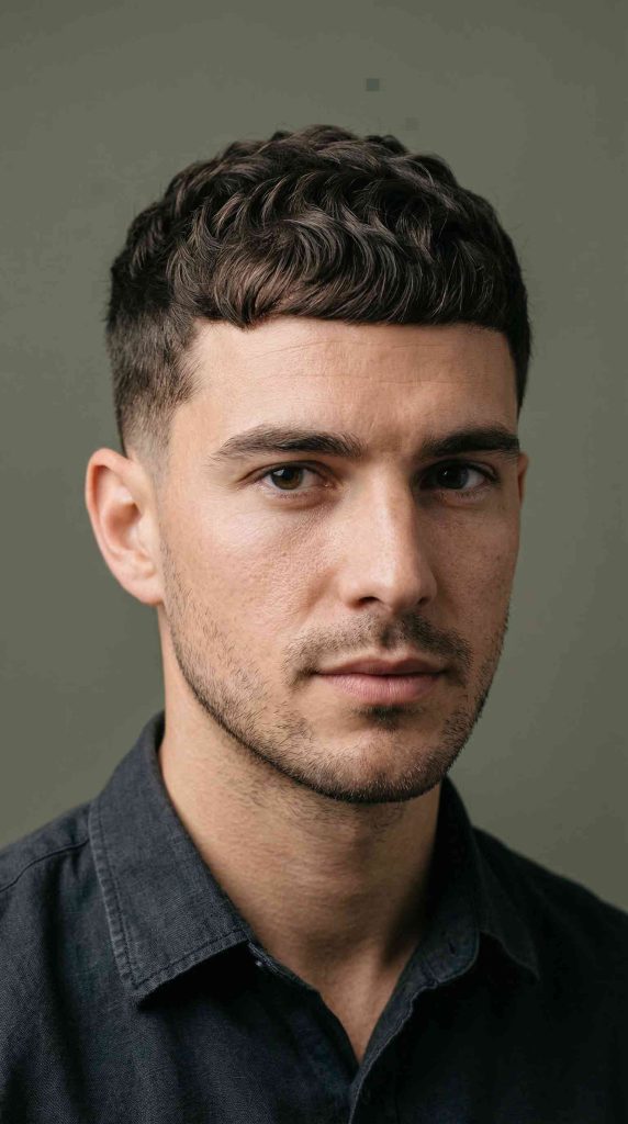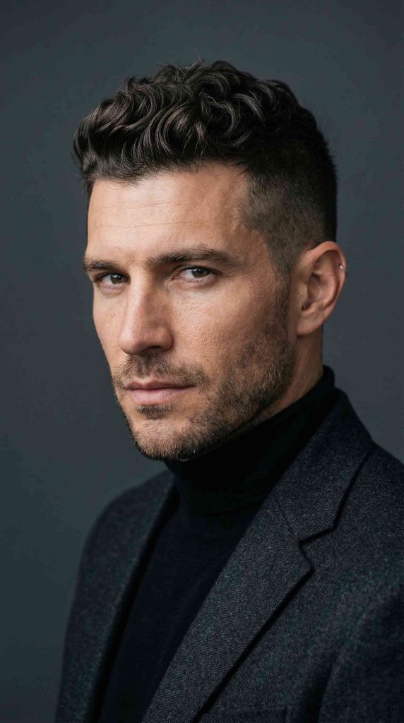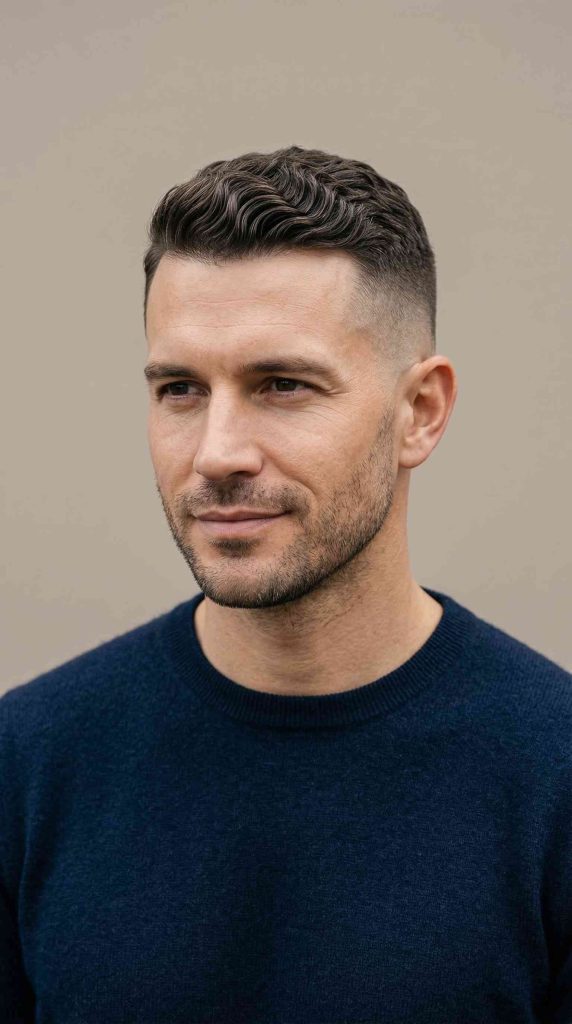 A wavy crew cut is short, tidy, and very easy to handle. The top stays just long enough for the natural wave to show a little.