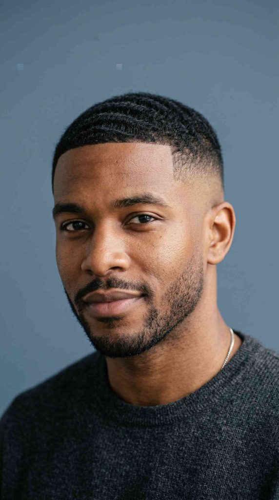 A taper fade with short waves is clean, simple, and easy to live with. The fade sharpens the edges, while the short waves add texture on top.
