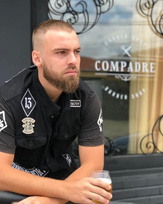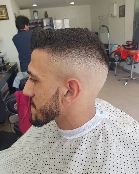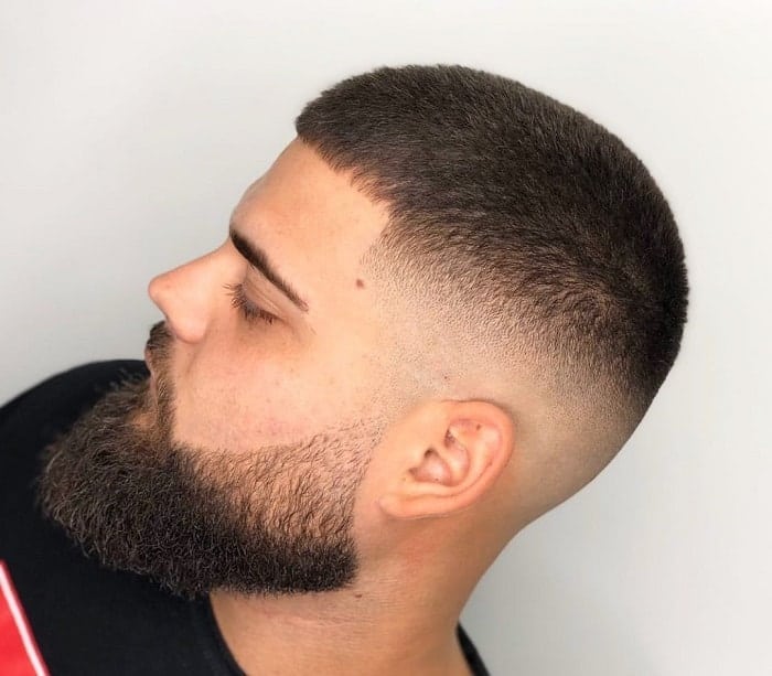 This haircut is easy to maintain with regular trims every 4 to 6 weeks. The short top doesn’t require much styling, and the fade stays sharp with proper care. It suits all hair types and looks great with a beard, adding a clean, refined touch to your appearance.