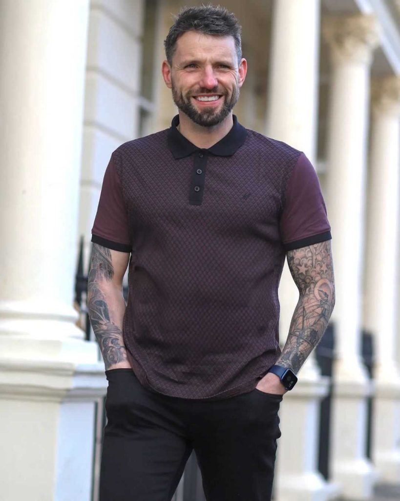 A maroon polo with dark trousers hits the sweet spot between casual and formal. It’s a strong choice for a smart casual men summer office look when you don’t want a full shirt and blazer.