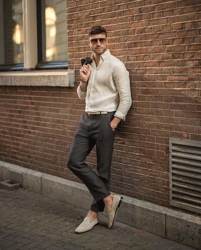 In summer, the best results come from light fabrics, simple colors, and smart shoes that aren’t too formal. Below is a photo-style gallery of outfit ideas you can copy for work, dinners, and weekends.