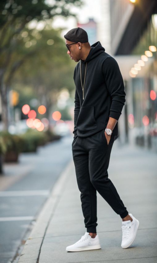 Streetwear Men Outfits are everyday looks inspired by skate culture, hip-hop, and modern city life. They focus on comfort, loose fits, and pieces you can move in, like hoodies, tees, cargos, and sneakers.