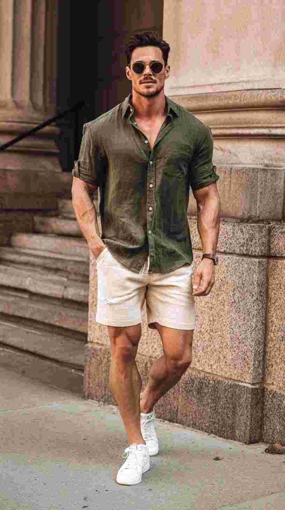 Go with an oversized tee or a short-sleeve button-up, lightweight shorts or relaxed pants, and breathable sneakers. Add a cap and sunglasses to finish the look.