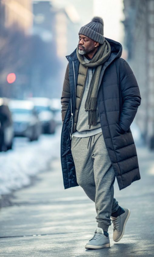 Winter Streetwear Men Outfits look best when you layer with purpose. Start with a hoodie, add a warm jacket, and finish with pants that give you room to move.
