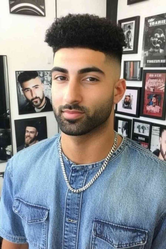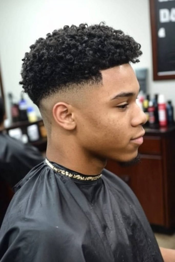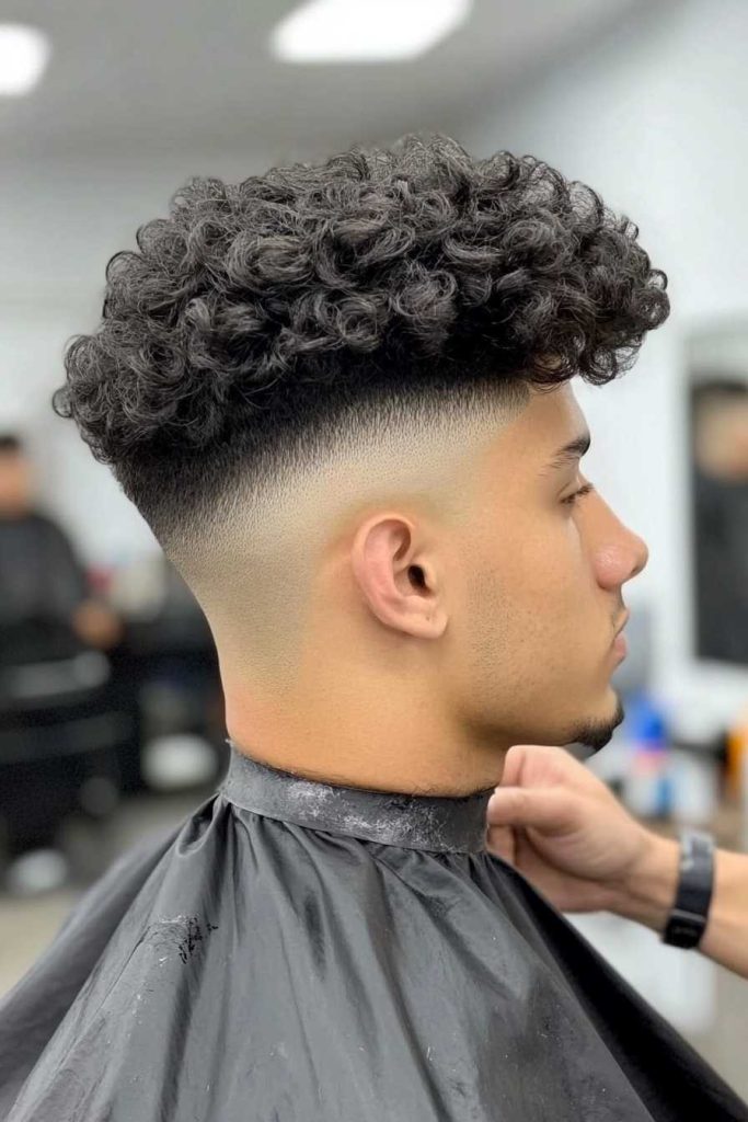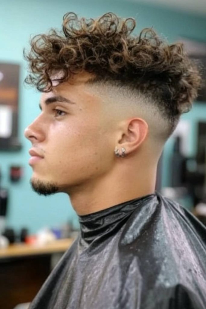 This style leaves extra volume on top and keeps the temples tight. The fade gives structure while the curls give personality.