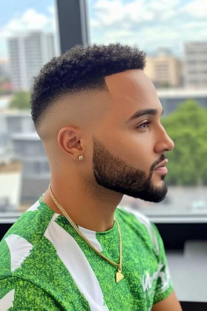 Next, explain what you want on top. Mention the length, the shape, and if you want texture, curls left natural, or a side part. If you have a beard, ask for the fade to blend into it. Bringing a clear photo also helps your barber match the look.