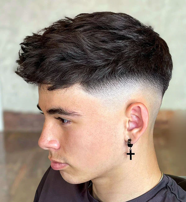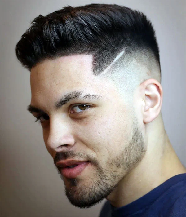 The modern pompadour fade is a stylish update to a classic haircut. The top is left longer and styled upward for volume, while the sides are faded short. This creates a strong contrast that looks polished and modern.