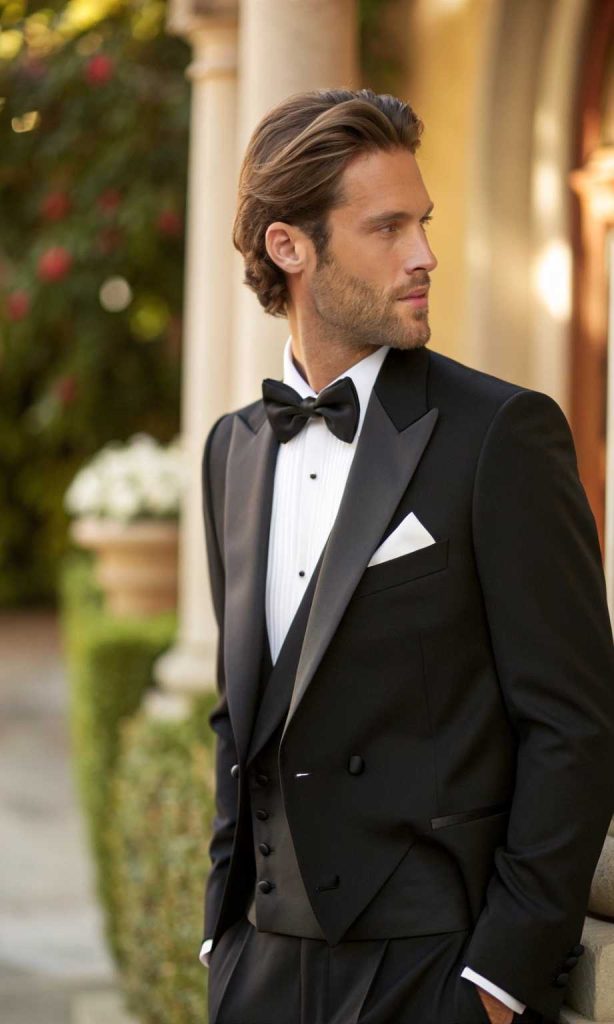 Long hair adds a soft and romantic touch to the overall look. When it complements the suit or tux, it brings a modern yet timeless feel. It’s an ideal choice for men who appreciate a more natural and relaxed appearance while still staying elegant.
